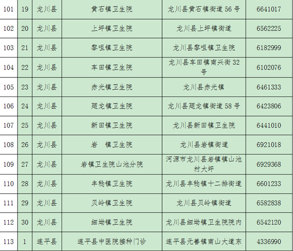 河源市新冠病毒疫苗接種單位一覽表(第一批)