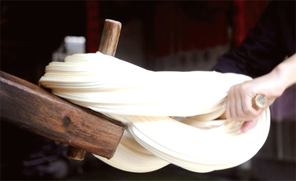見火候差不多了,母親將糖飴撈起,懸在一個木架上,像拉皮筋一樣來回扯動,好讓冷空氣滲入,形成固化。慢慢地,眼前的一大團飴糖,在冷卻過程中,從最初的琥珀色,過渡為嫩黃色,最后定格為雪白,宛如一塊潔白無瑕的漢白玉。