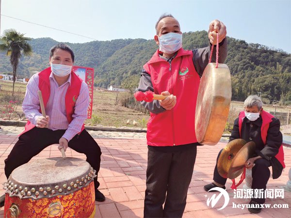 東源縣大往村村民敲鑼打鼓,慶祝鄉村振興戰略給家鄉帶來的新變化。