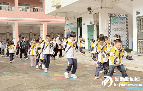 河源市第二小學(xué),下課鈴響起,學(xué)生飛快地奔向操場,校園變成“歡樂海洋”。